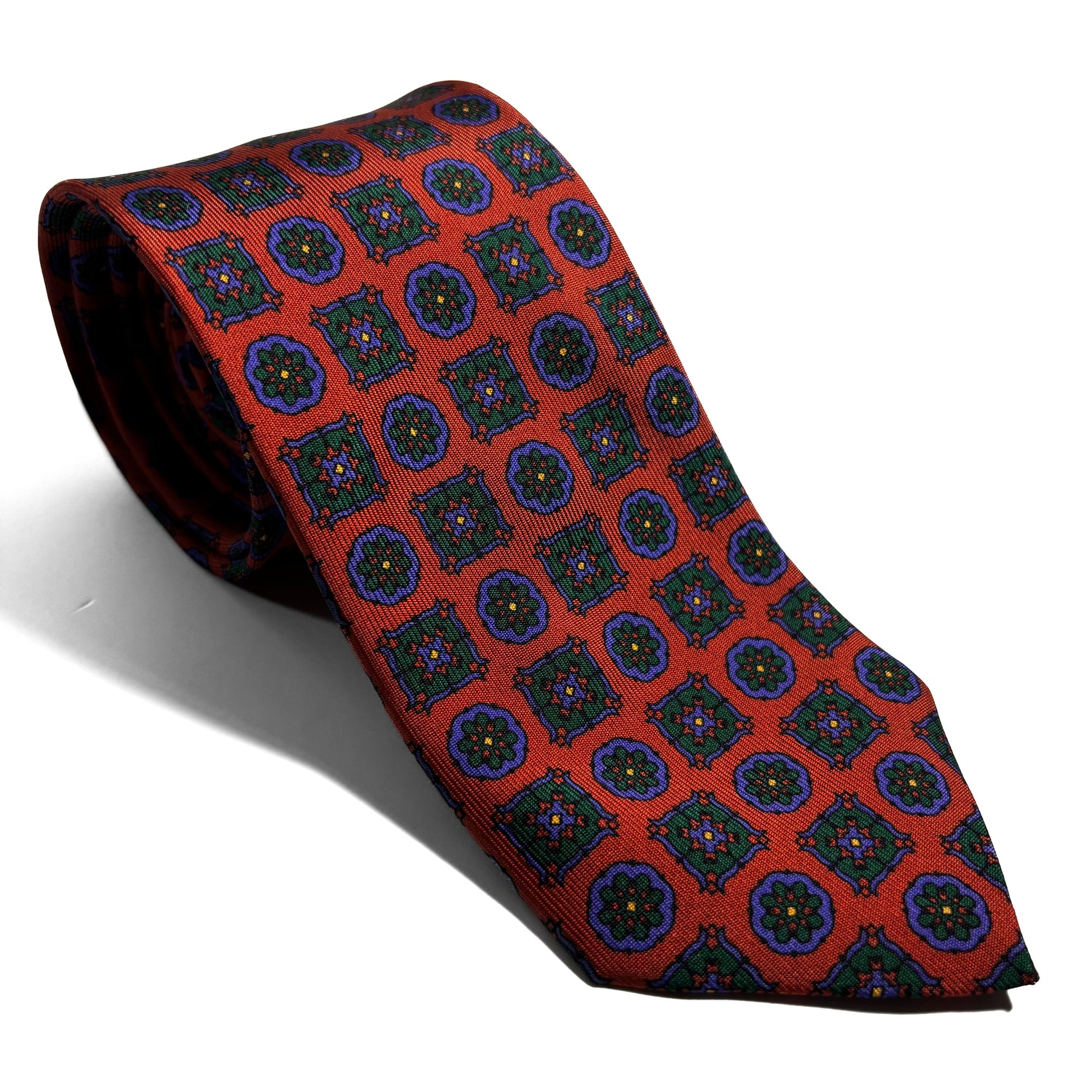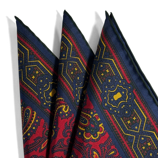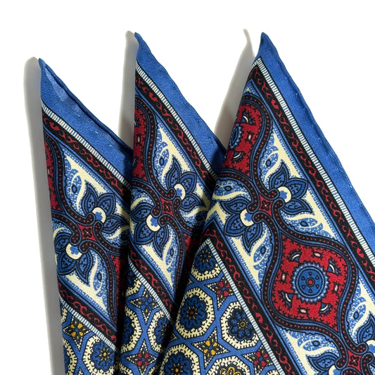 Red & Blue Medallion Ancient Madder Silk Pocket Square