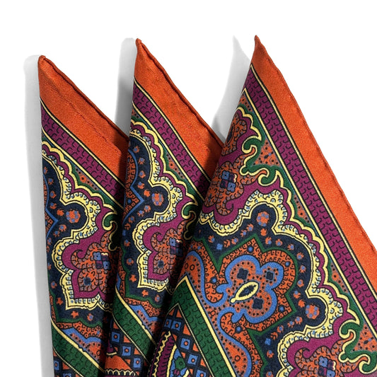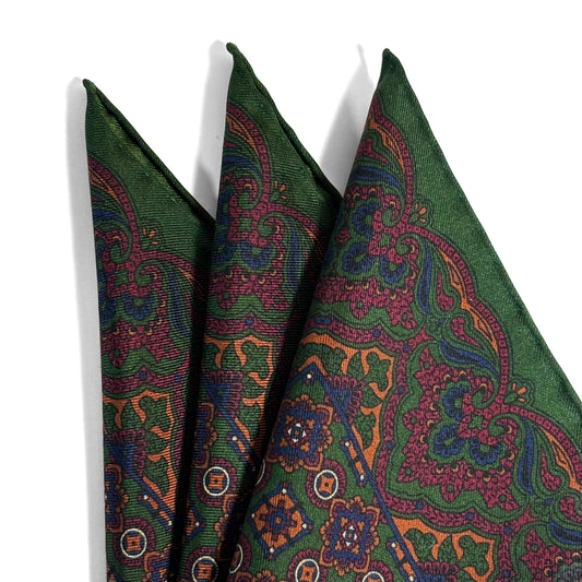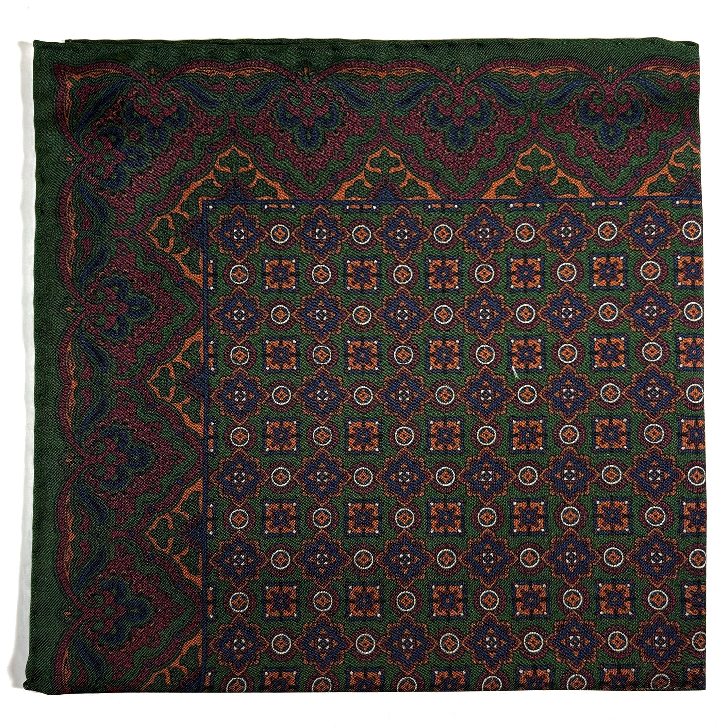 Forest Green & Orange Medallion Ancient Madder Silk Pocket Square