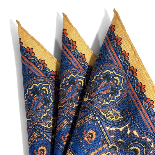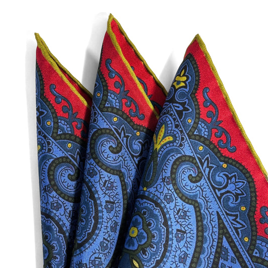 Burgundy & Yellow Paisley Ancient Madder Silk Pocket Square