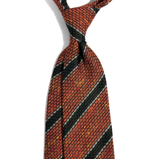 Autumn Orange & Green Striped Tussah Jaspe Silk Grenadine Tie (Garza Grossa)