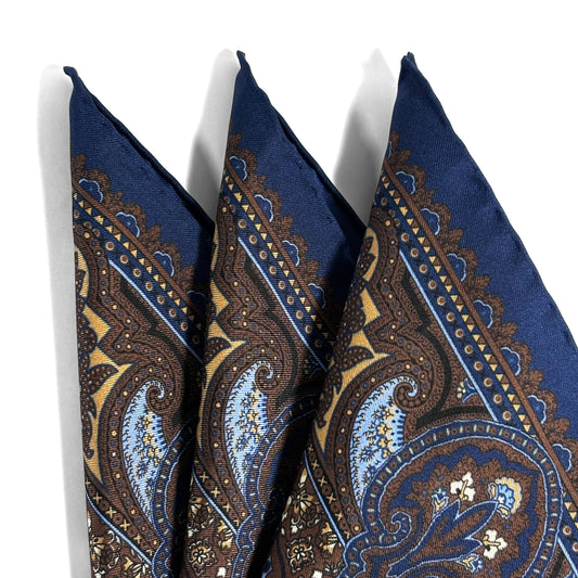Navy Blue & Cream Paisley Ancient Madder Silk Pocket Square