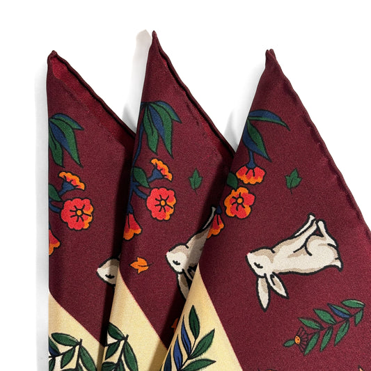 Ivory & Burgundy Gazelle Motif Ancient Madder Silk Pocket Square