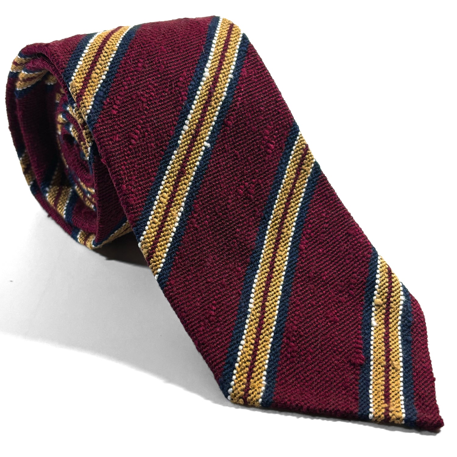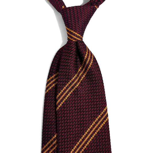 Burgundy & Gold Striped Silk Grenadine Tie (Garza Grossa)