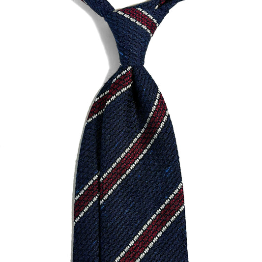 Navy Blue & Red Striped Tussah Jaspe Silk Grenadine Tie (Garza Grossa)
