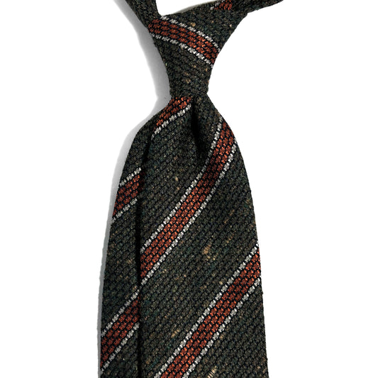 Earthy Green & Orange Striped Tussah Jaspe Silk Grenadine Tie (Garza Grossa)