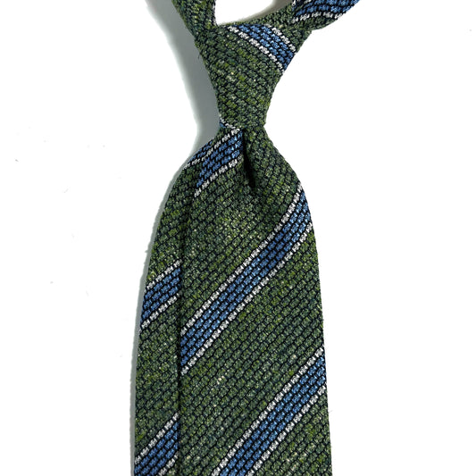 Green & Light Blue Striped Tussah Jaspe Silk Grenadine Tie (Garza Grossa)