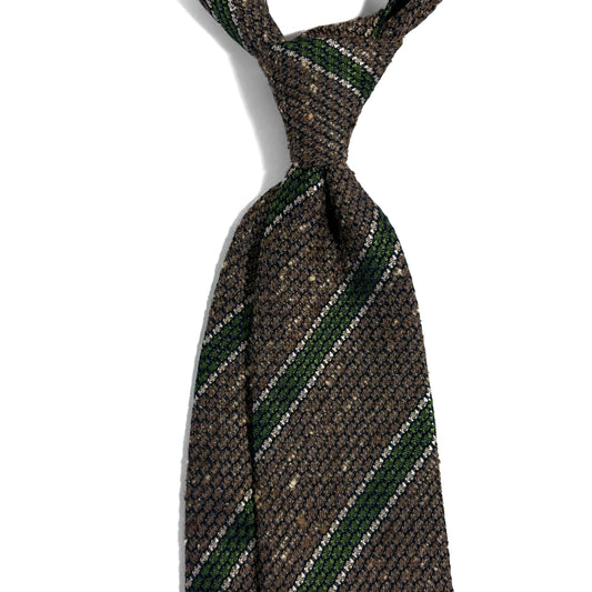 Brown & Green Striped Tussah Jaspe Silk Grenadine Tie (Garza Grossa)