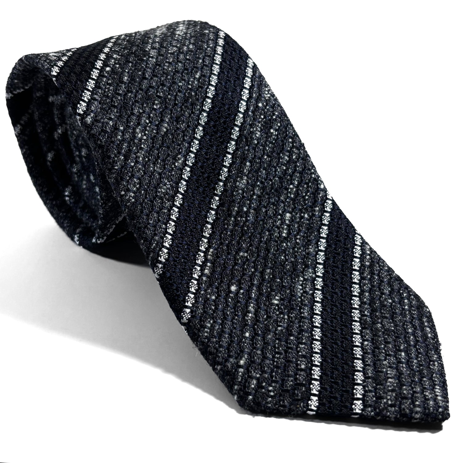 Charcoal Gray & Black Striped Tussah Jaspe Silk Grenadine Tie (Garza Grossa)