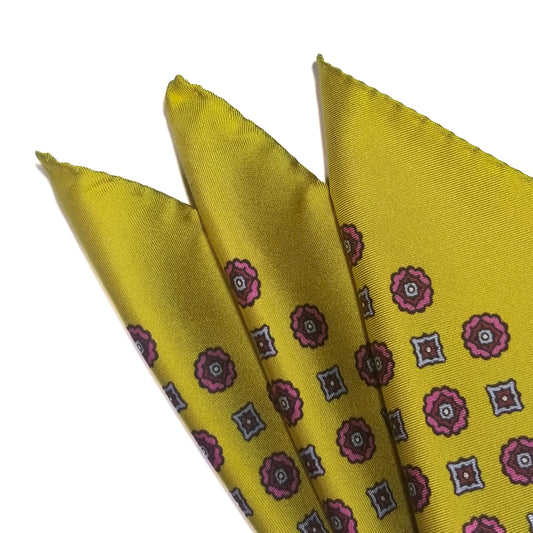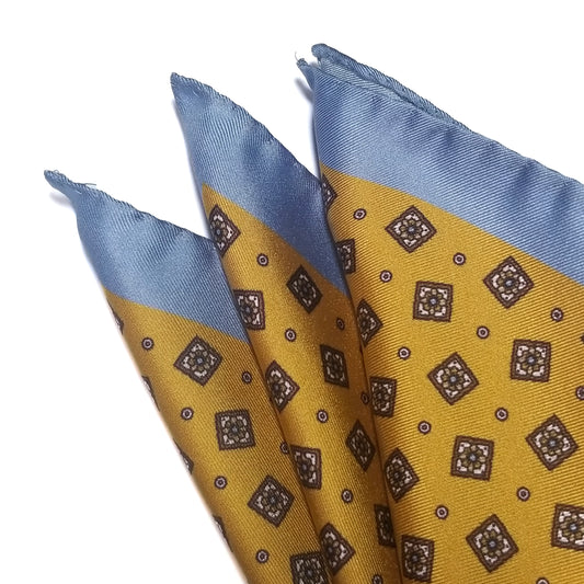 17" Yellow & Blue Geometric Silk Twill Pocket Square
