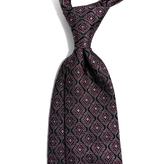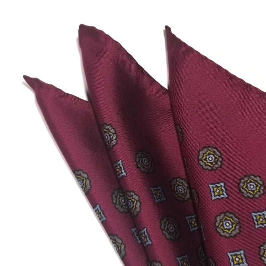 12.5" Bordeaux Geometric Silk Twill Pocket Square