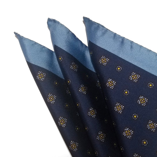 17" Navy Blue / Honey Gold Floral Silk Twill Pocket Square