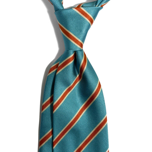 Autumn Orange & Green Striped Tussah Jaspe Silk Grenadine Tie (Garza Grossa)