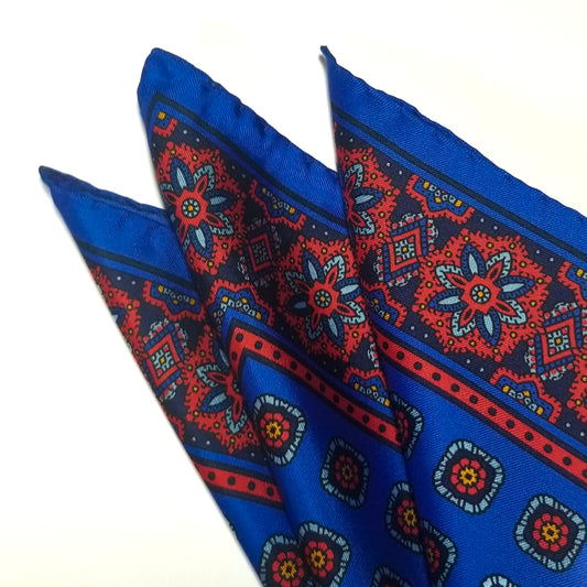 12.5" Royal Blue Geometric Medallion Silk Twill Pocket Square