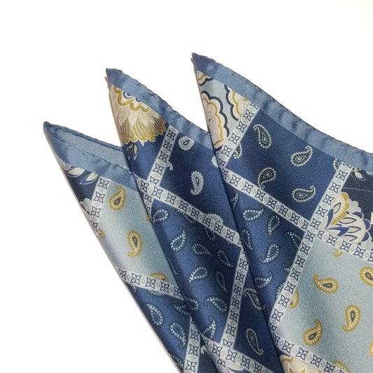17" Sky Blue Paisley Printed Silk Twill Pocket Square