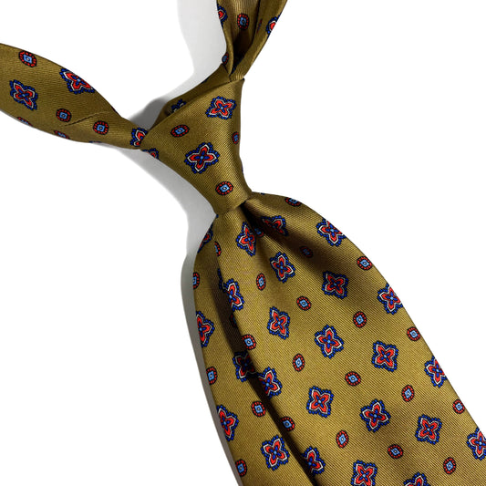 7 Fold Olive Green Geometric Printed Silk Twill Tie (Handmade in Italy)
