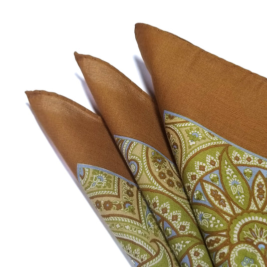 17" Burnt Orange / Green Medallion Silk Twill Pocket Square