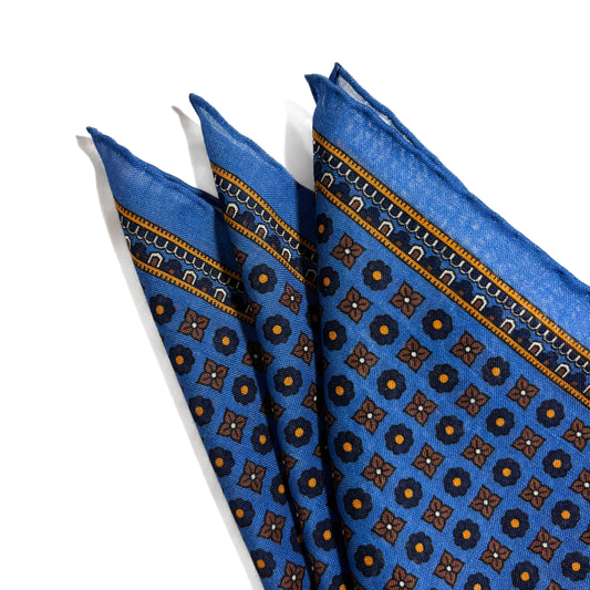 Azure Blue - Floral - Wool/Silk Pocket Square