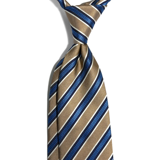 Beige Striped Silk Grenadine Tie (Garza Fina)