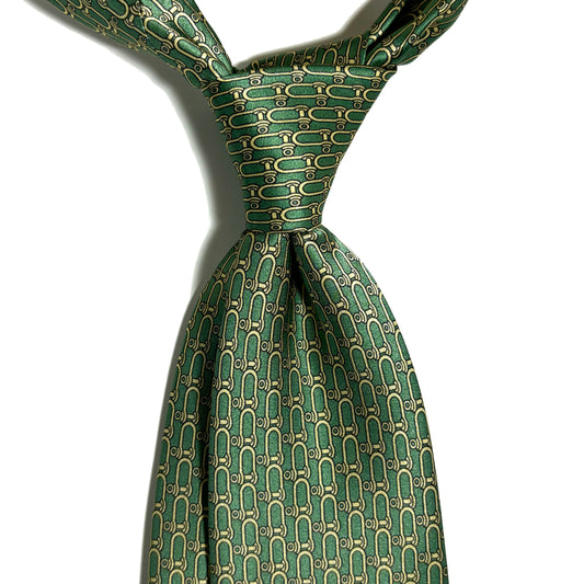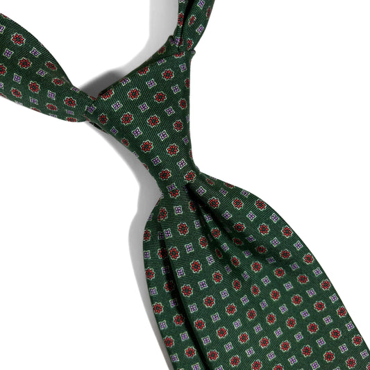 Hand-Printed Forest Green Geometric Ancient Madder Silk Tie