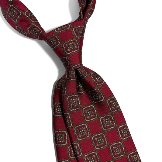 Hand-Printed Red Geometric Medallion Ancient Madder Silk Tie