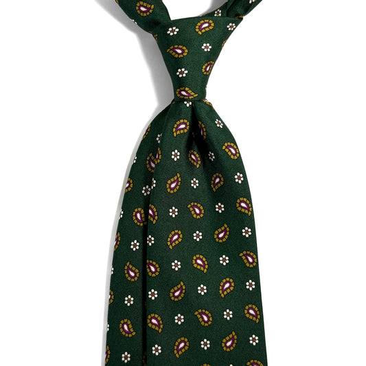 Hand-Printed Green Small Paisley Silk Tie