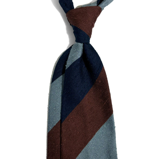 Untipped Navy / Light Blue / Brown Block Stripe Silk Shantung Tie