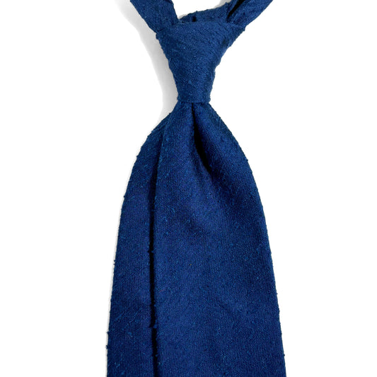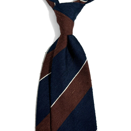 Unlined Navy Blue & Brown Striped Silk Shantung Tie