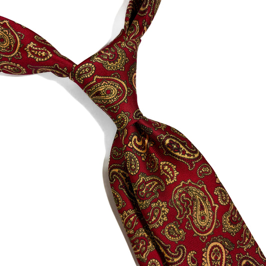 Slim Screen-Printed Red & Cream Paisley Silk Tie