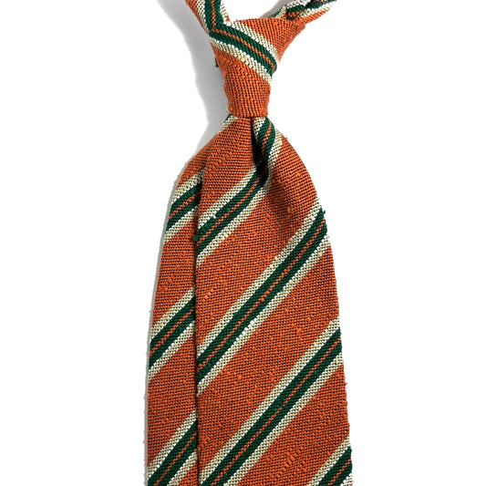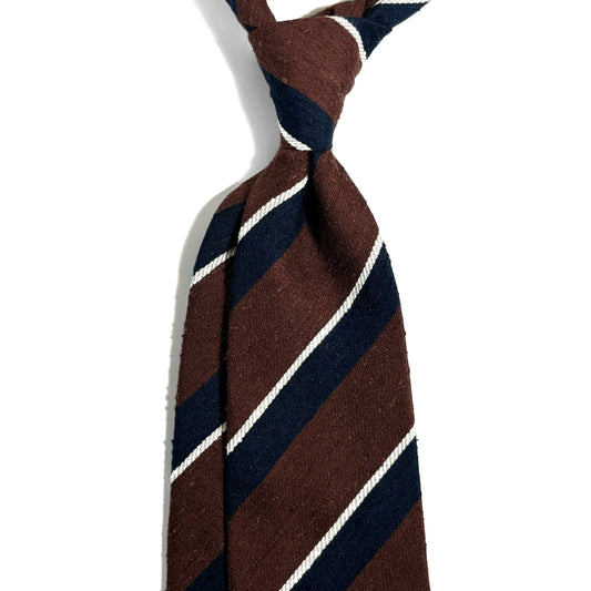 Untipped Rust Brown / Navy Striped Silk Shantung Tie