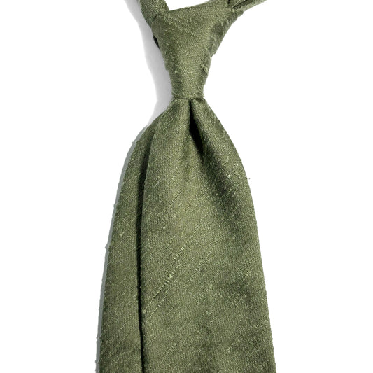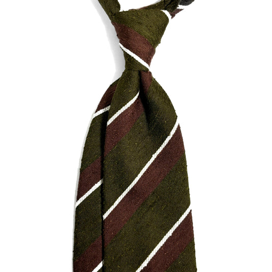 Untipped Olive Green / Brown Striped Silk Shantung Tie