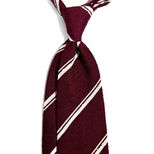 Untipped Burgundy & White Striped Silk Shantung Tie