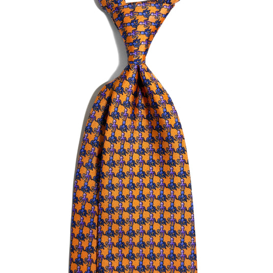 Whimsical Orange Sea Motif Untipped Printed Silk Tie