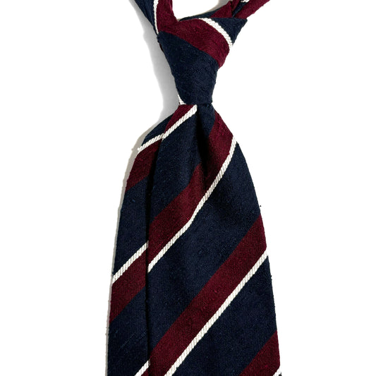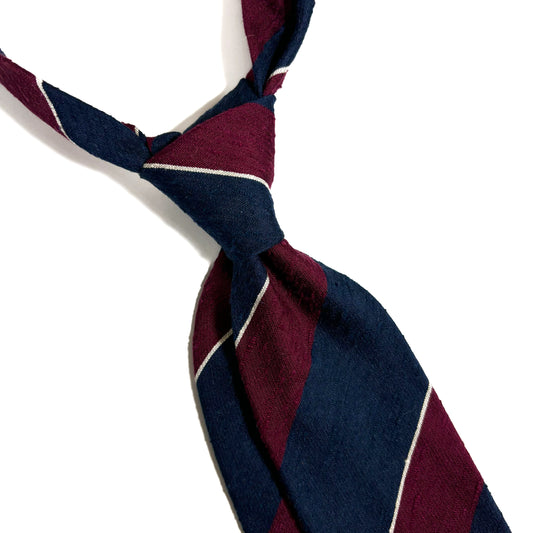 Untipped Navy Blue / Burgundy Block Stripe Silk Shantung Tie