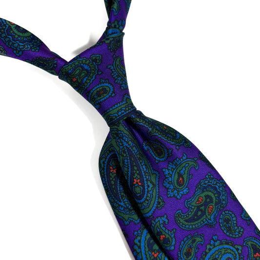 Slim Screen-Printed Green Paisley Foulard Silk Tie