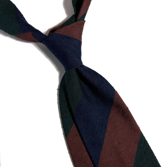 Untipped Navy Blue / Olive Green / Burgundy Block Stripe Silk Shantung Tie