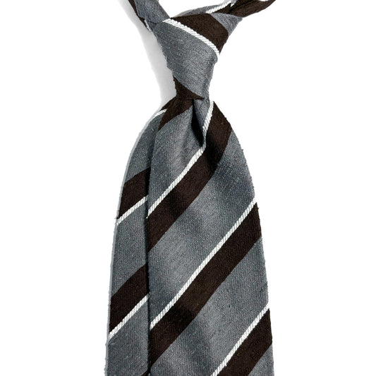Untipped Gray / Brown Striped Silk Shantung Tie