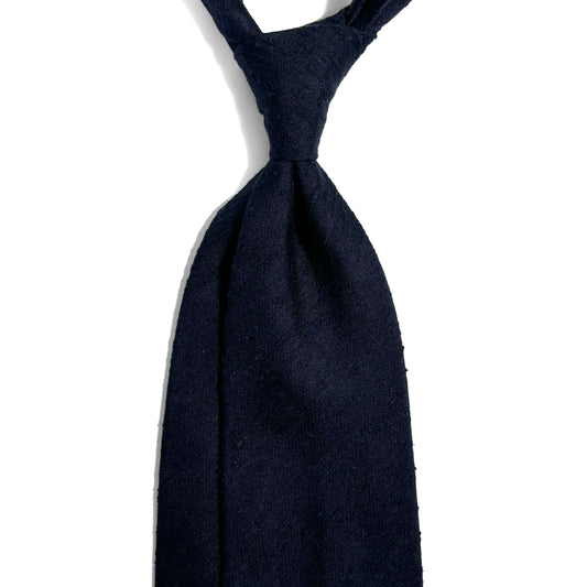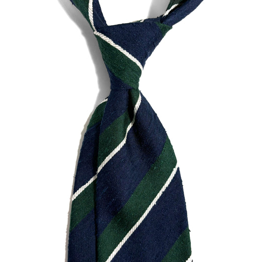 Untipped Navy Blue & Green Striped Silk Shantung Tie