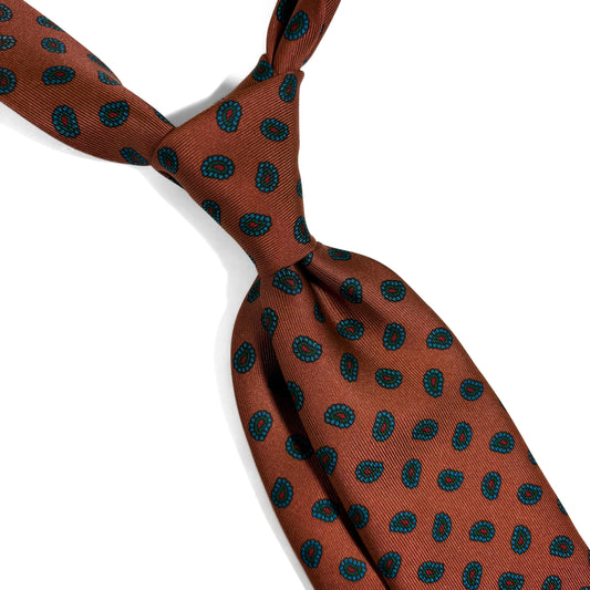 Terracotta Orange Small Paisley Silk Jacquard Tie