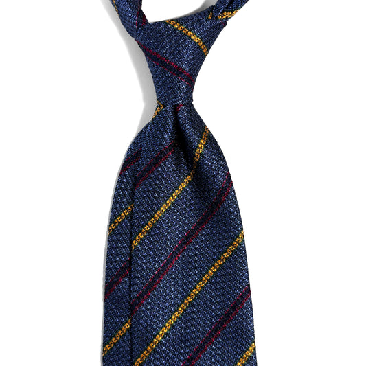 Untipped Navy Blue & Lemon Yellow Striped Silk Shantung Tie