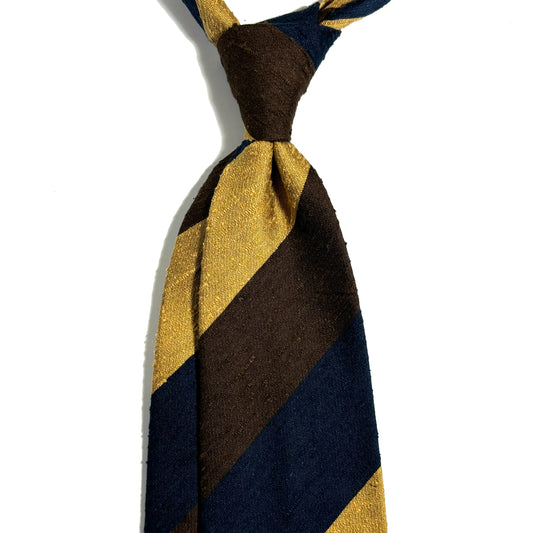 Untipped Navy Blue / Gold / Brown Block Stripe Silk Shantung Tie