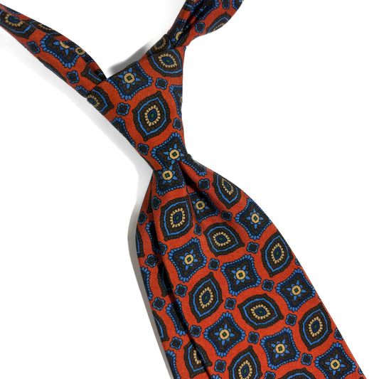 Hand-Printed Terracotta Orange Geometric Ancient Madder Silk Tie
