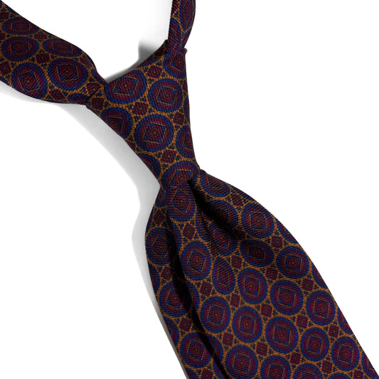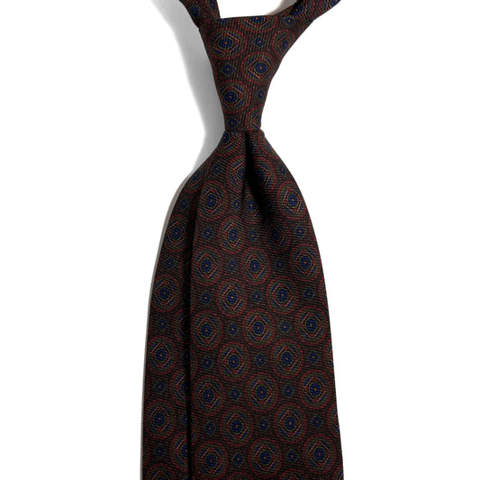 Hand-Printed Rust Burgundy Geometric Ancient Madder Silk Tie