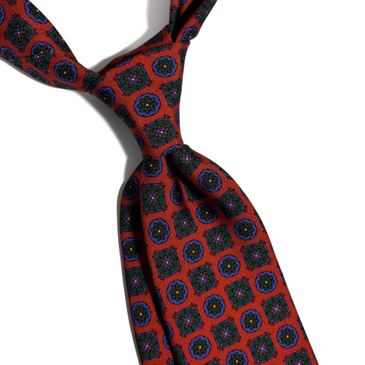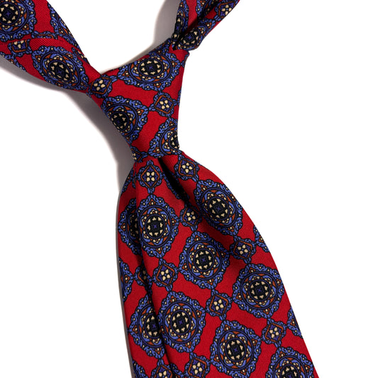 Hand-Printed Red Geometric Medallion Ancient Madder Silk Tie