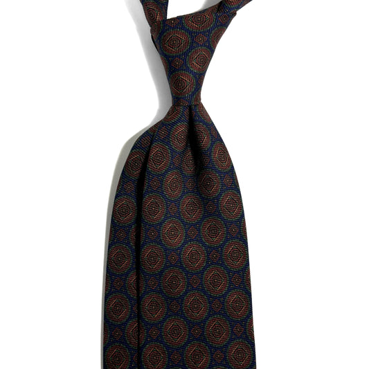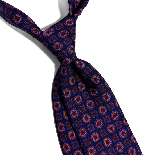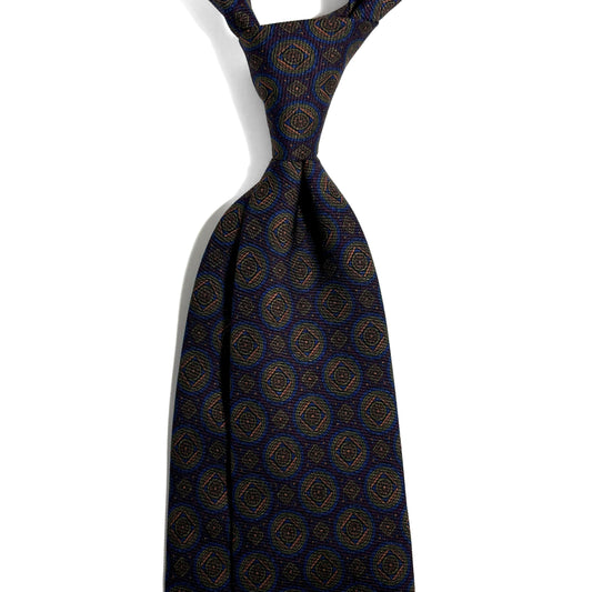 Hand-Printed Navy Blue Geometric Ancient Madder Silk Tie