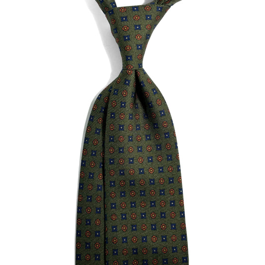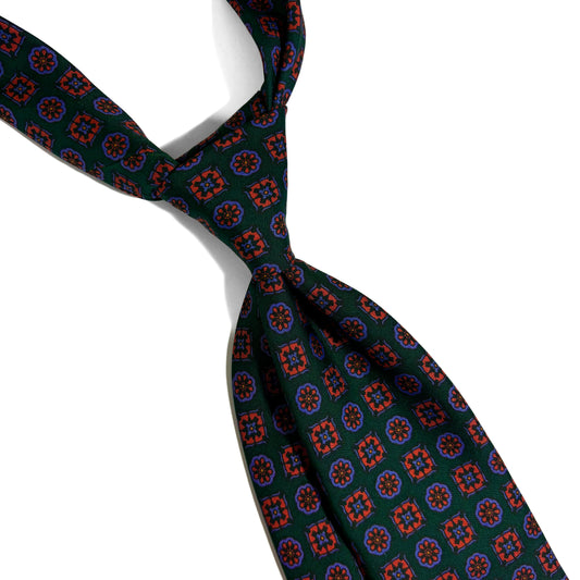 Hand-Printed Forest Green Geometric Ancient Madder Silk Tie