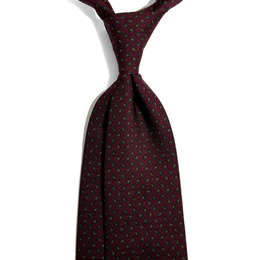 Hand-Printed Burgundy & Green Geometric Ancient Madder Silk Tie