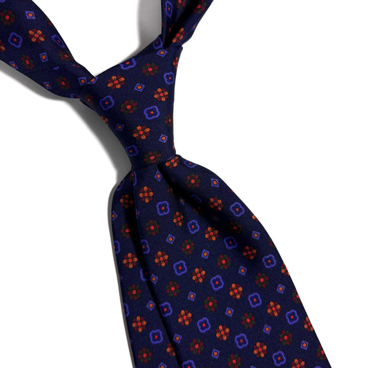 Hand-Printed Navy Blue Floral Neats Ancient Madder Silk Tie