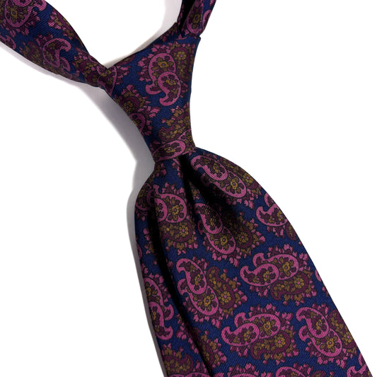 Hand-Printed Navy Blue & Pink Paisley Ancient Madder Silk Tie