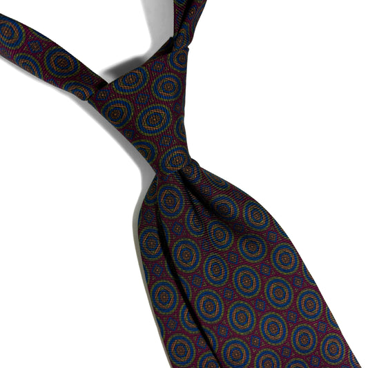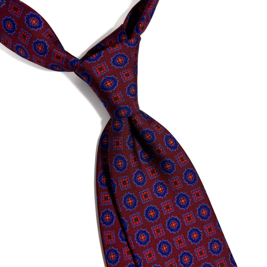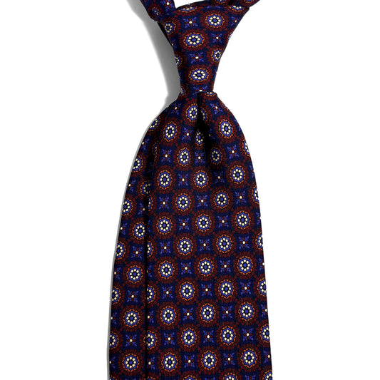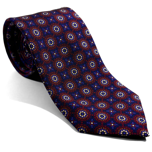 Hand-Printed Navy Blue & Burgundy Geometric Ancient Madder Silk Tie