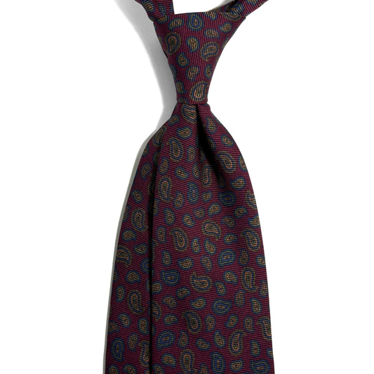 Hand-Printed Wine Red & Green Paisley Ancient Madder Silk Tie